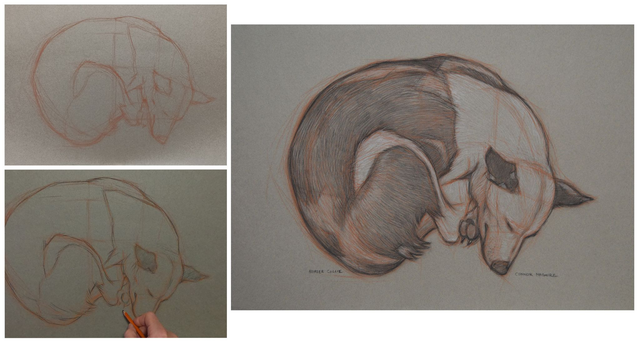 Charcoal drawing on Strathmore paper 60cm x 45cm. Sanguine, Charcoal and white chalk.