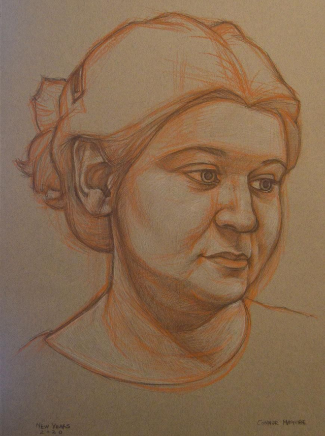 Charcoal and white chalk on Canson paper- Approx 35 x 40cm image size
