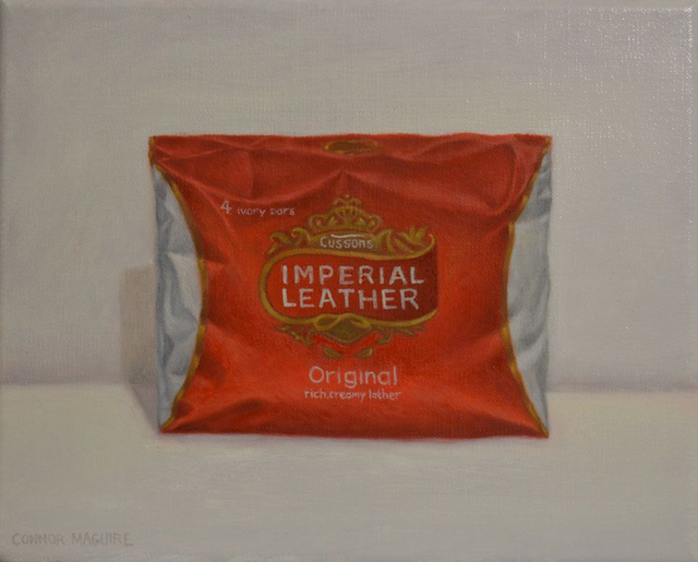 Soap - This is a painting in Oil on linen. It was exhibited in my solo exhibition in the Artisann Gallery in Belfast 2021. It was part of the "Artefacts of a Pandemic" show that I put on. It was on exhibition amongst 25 other paintings. These paintings are all framed in a white float moulding. It is sized at 25 x 30cm and comes framed in a white moulding.